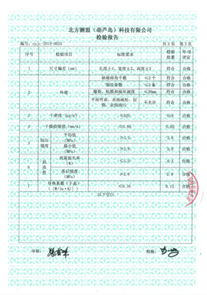 | 面密度kg/m3 | ≤90 | 49.5 |